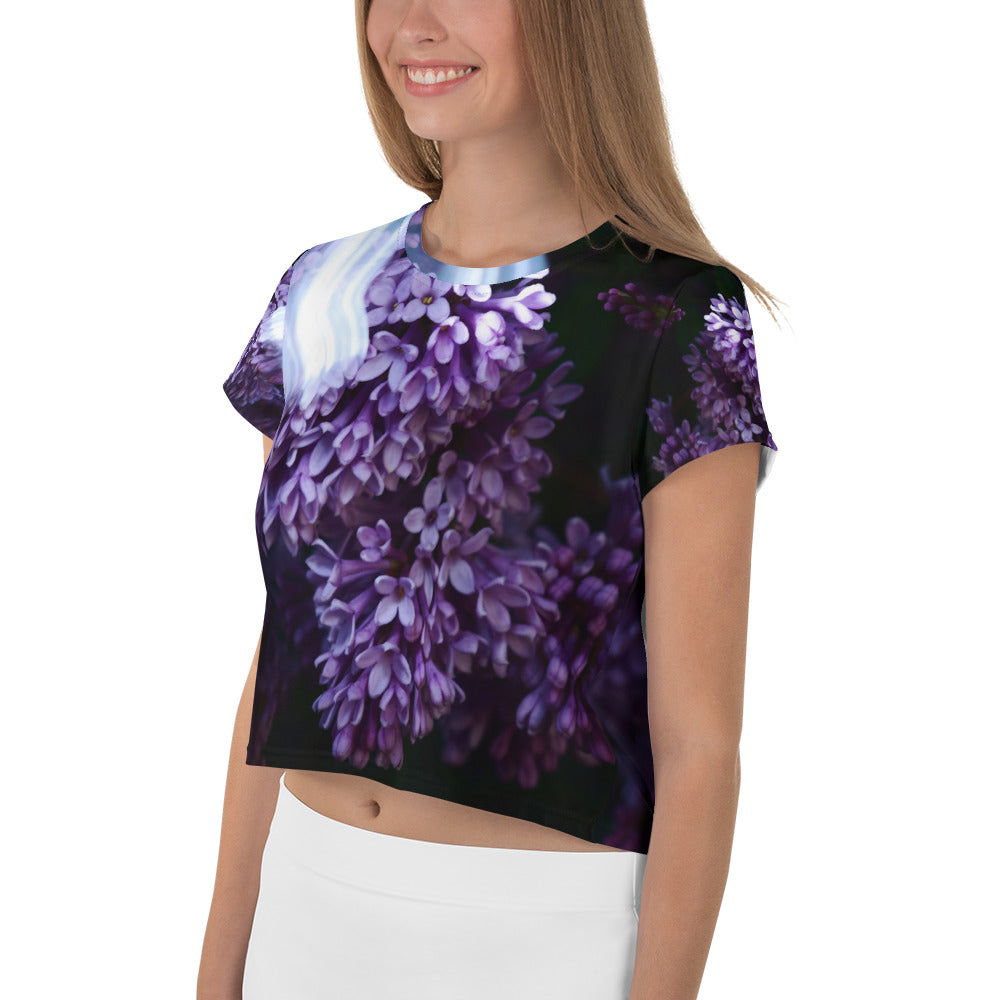 Women's Lilac All-Over Print Crop Tee